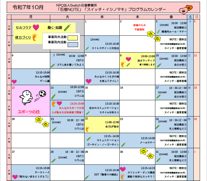 さてさて10月のプログラムカレンダーが出来たのでお知らせです。