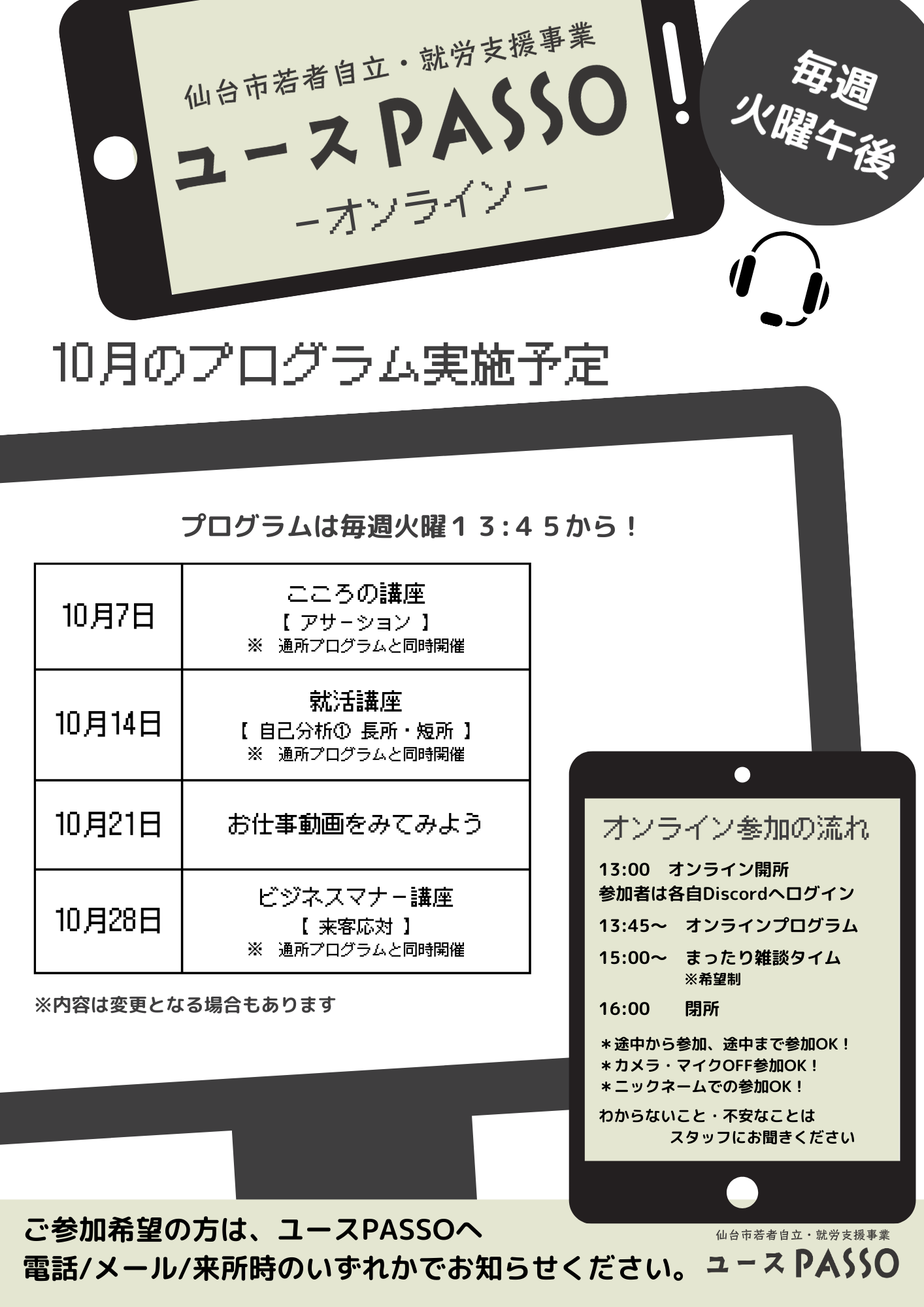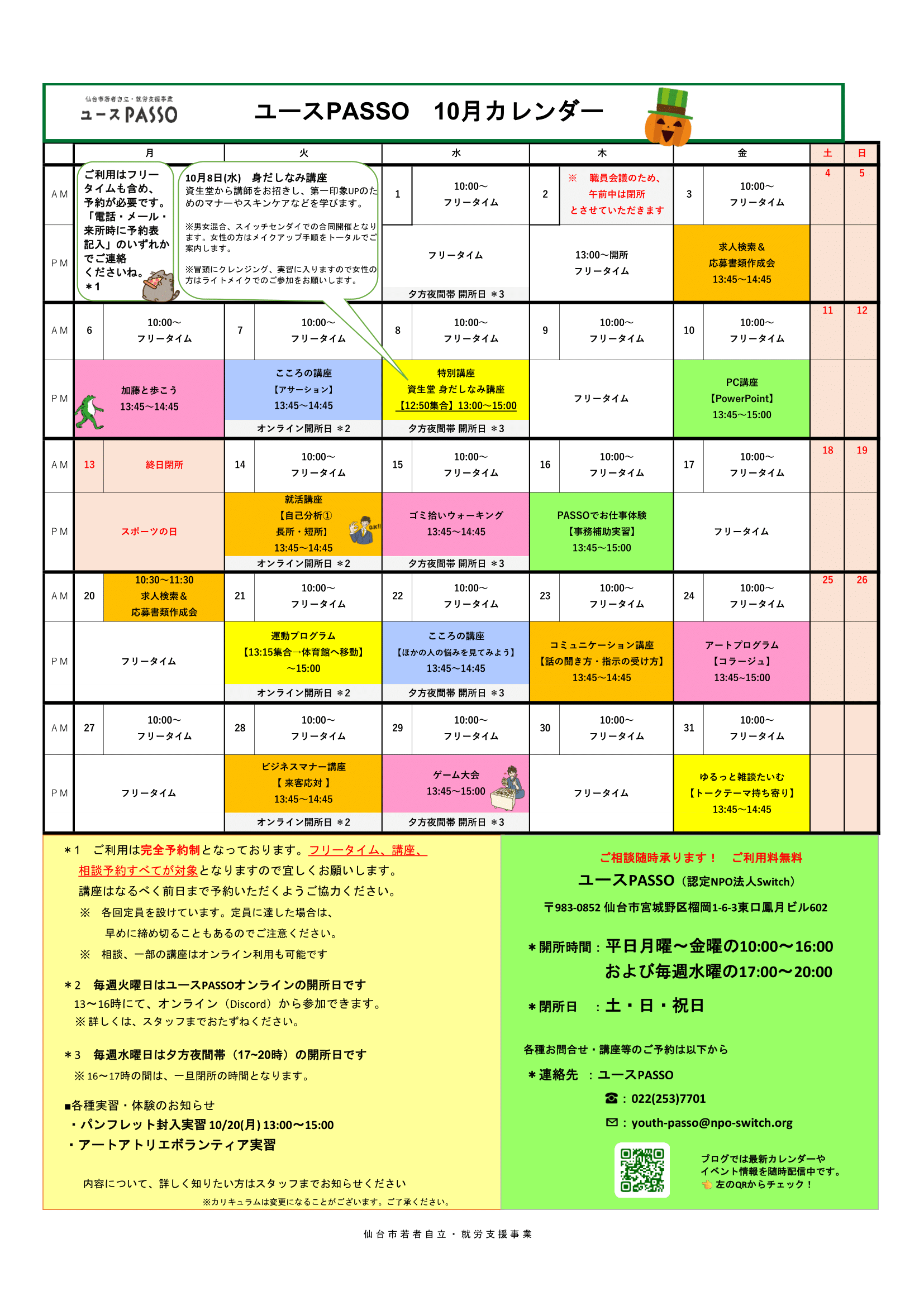 ユースPASSO10月のプログラムをお知らせいたします!