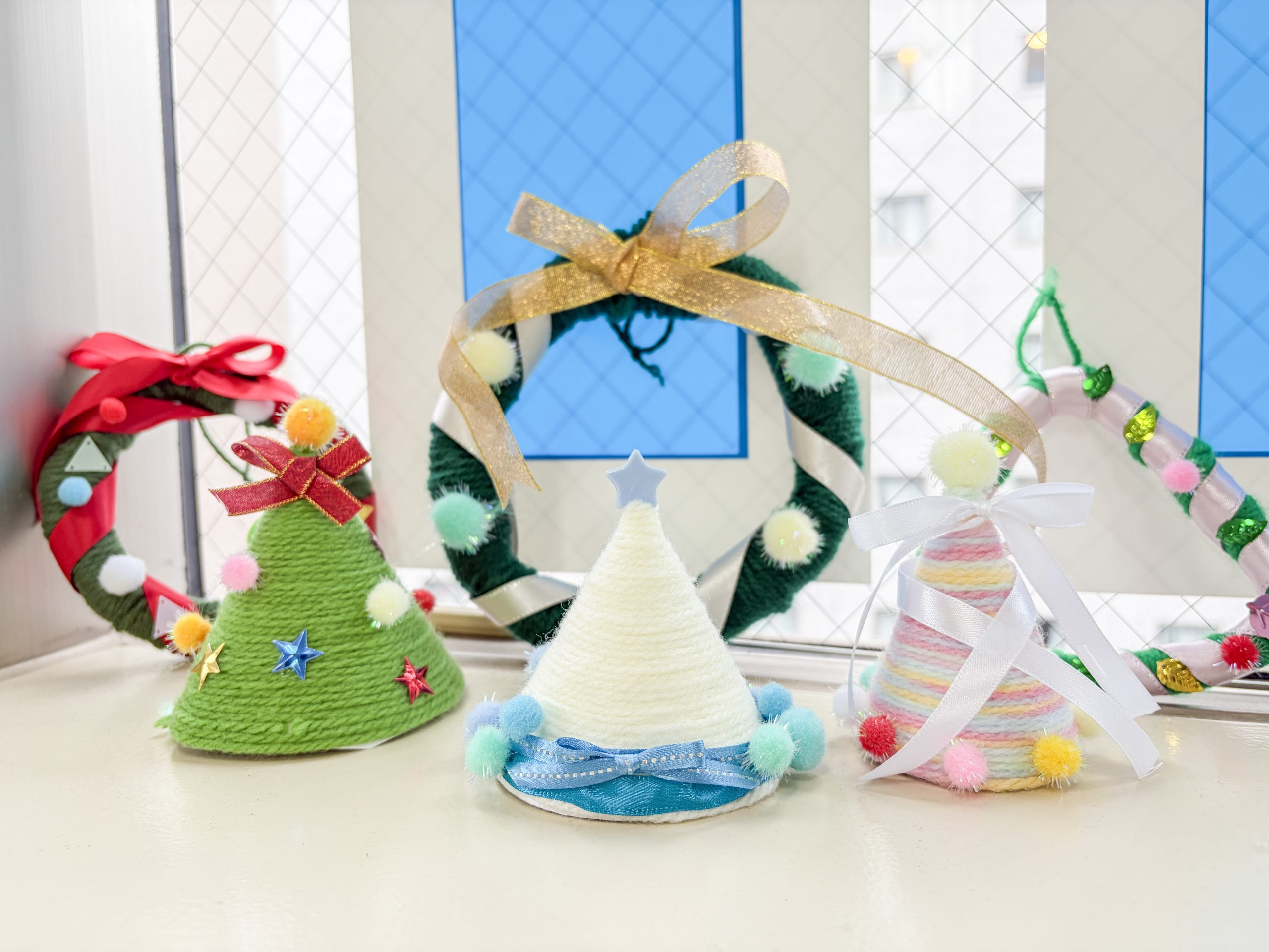 12月のアートプログラムでは、クリスマスへ向けてリースやミニツリーを作製しました☆