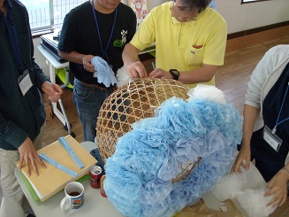 飾り作りに新たに参加した方に、スタッフが作り方を説明するのではなく、参加