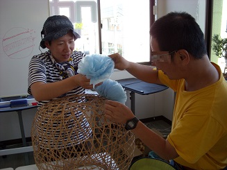 「作った花をこうやって付けて~」と、丁寧に説明していただきました!!