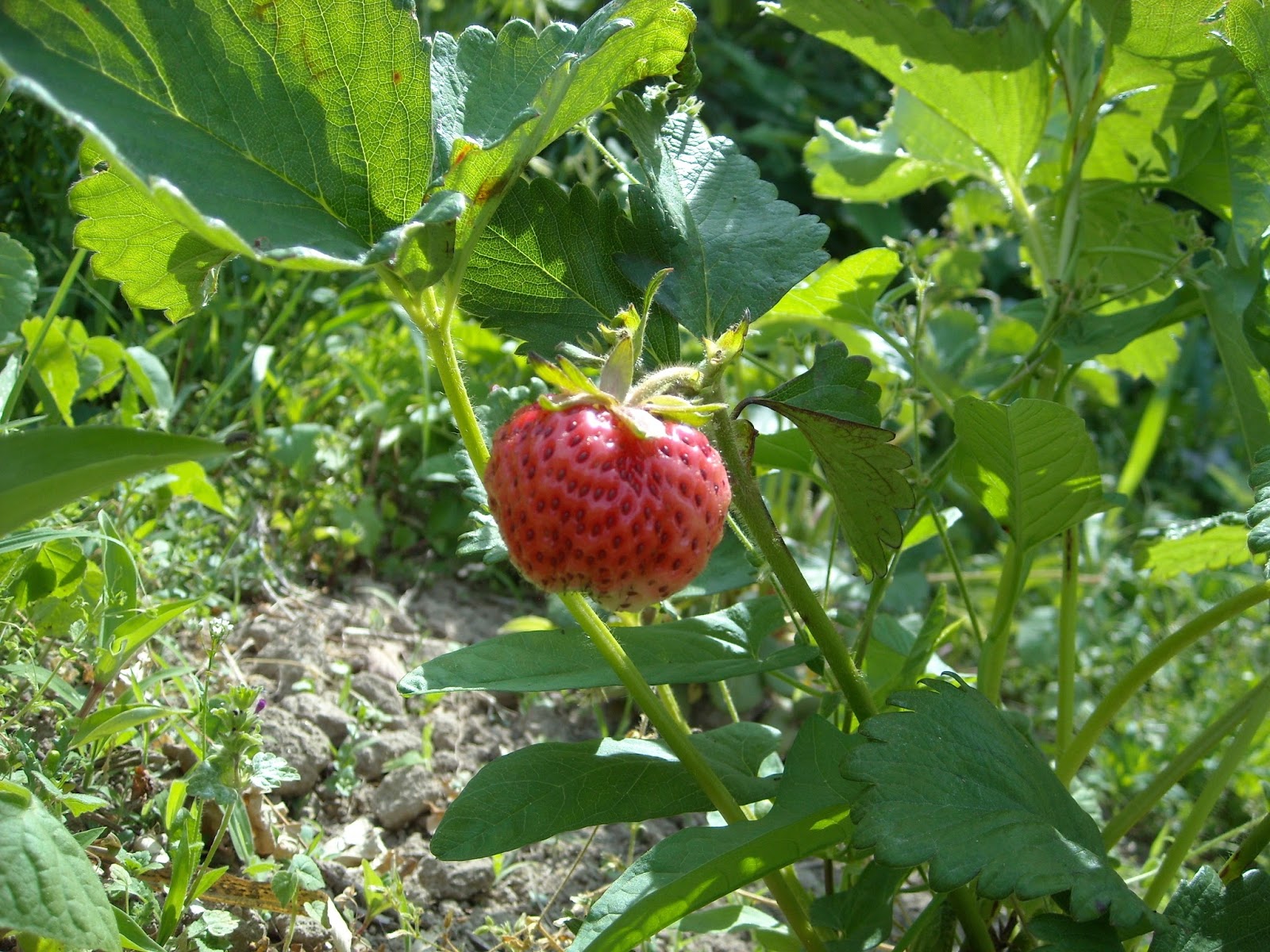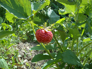 いちごは赤く色づいていました!裏側がまだ色づいていないので、収穫は次回まで待つことに~