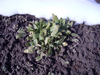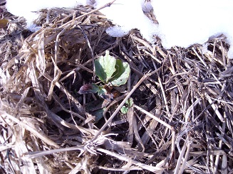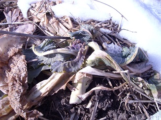 雪の隙間から、たくましく育っている野菜たちを見つけてきました。
