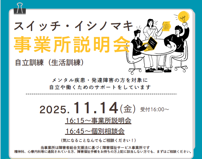 スイッチ・イシノマキでは、新規のご相談を随時受付中です!