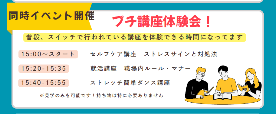 ぷち講座体験会では、普段スイッチの活動で行われている