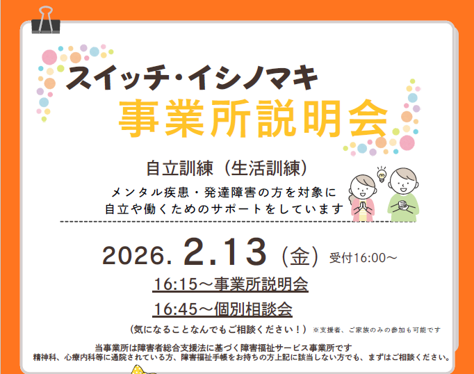 2月13日(金)スイッチ・イシノマキ事業所説明会を開催します!