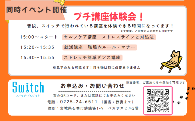 普段スイッチで行っているプチ講座体験会も開催します!