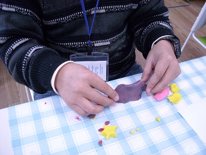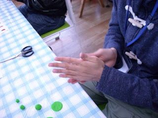 小さく粘土を丸めるところが大変だった、作り方を工夫したところ、思ったより集中して