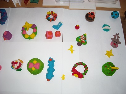 こむぎ粘土を使って、Xmasをテーマに作品作り。