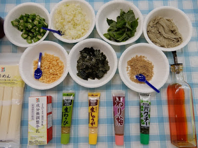 そして用意された具材や調味料はこちら! 参加者1人につき、少なくとも3種類ずつオリジナルのつゆをつくりました。