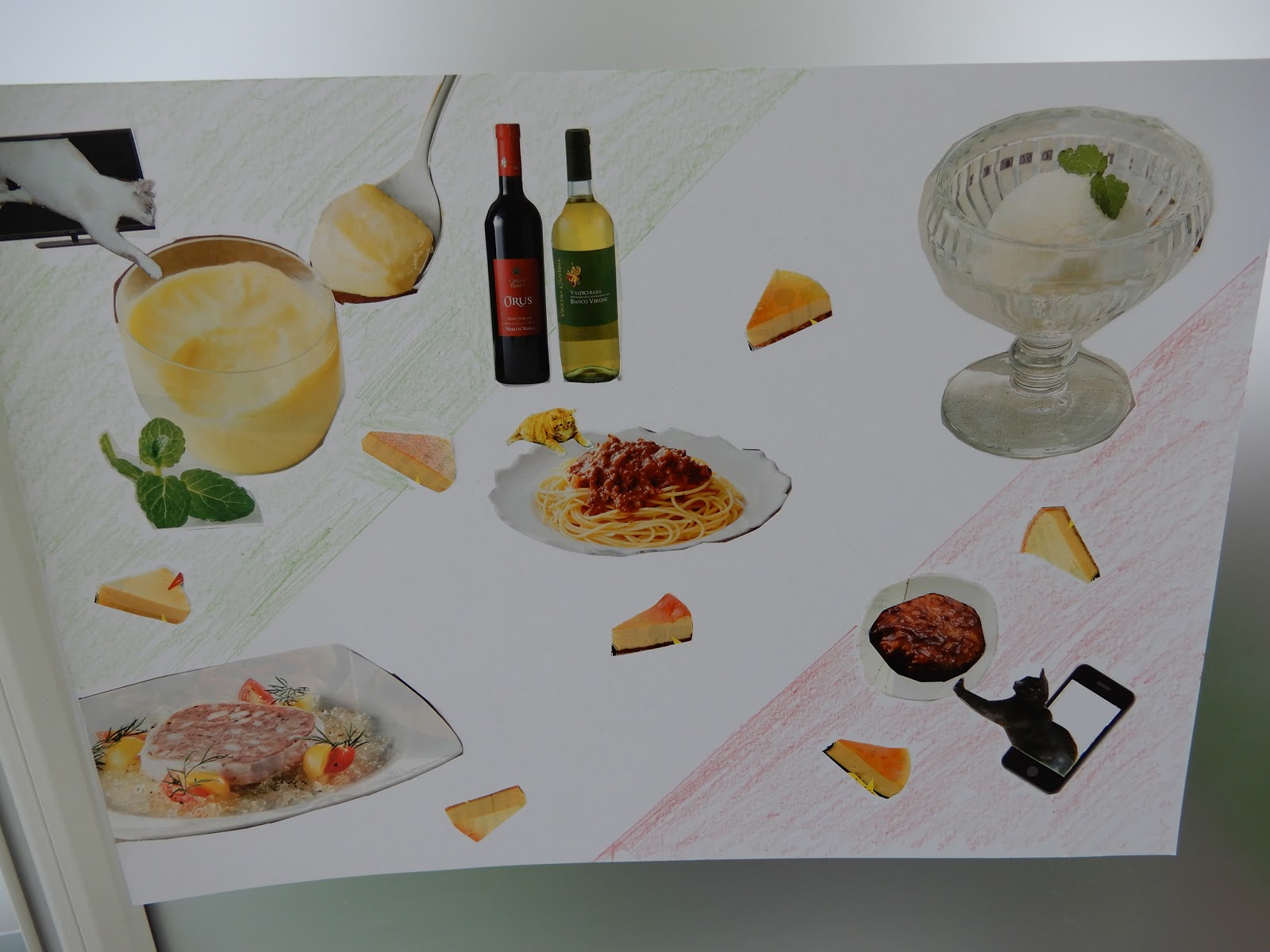 真っ白な画用紙に雑誌を切り貼りして自分の想いのままに作品を作り上げていく