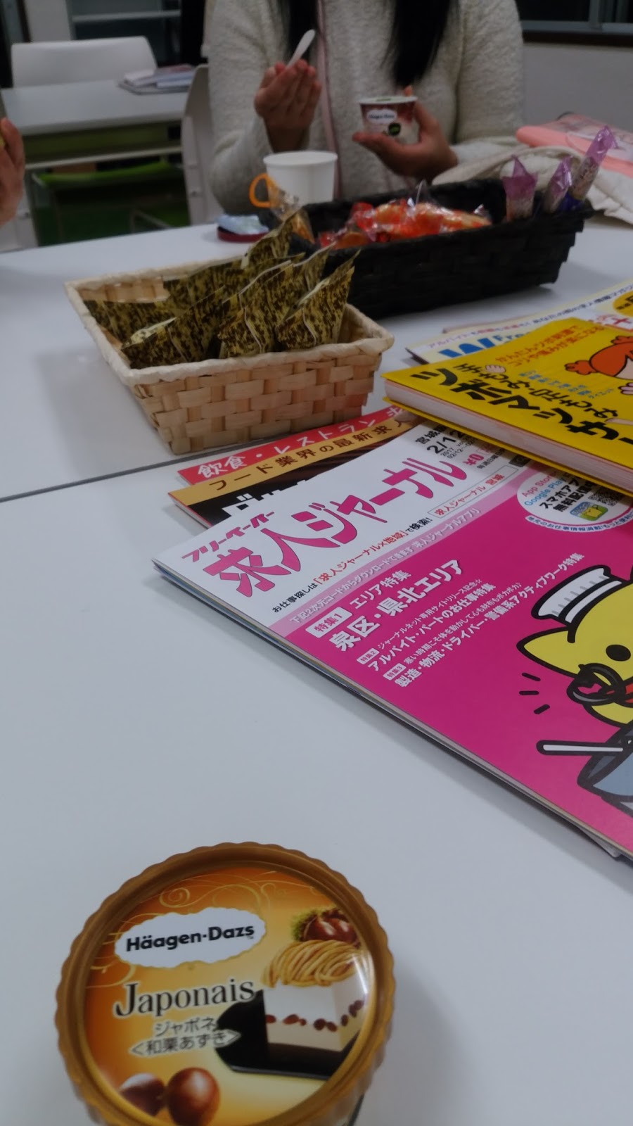 予定が合わず、来られなかった方もいましたが、今回はハーゲンダッツを食べながら卒業後から今までの事、今後の事等のお話しを聞くことが出来ました。