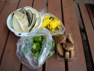 ファームの採れたて野菜と椎茸も焼いちゃいます