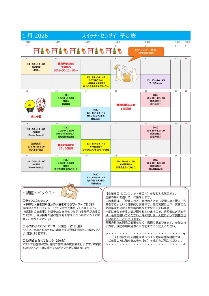 1月のスイッチ・センダイは楽しいプログラム満載です❣