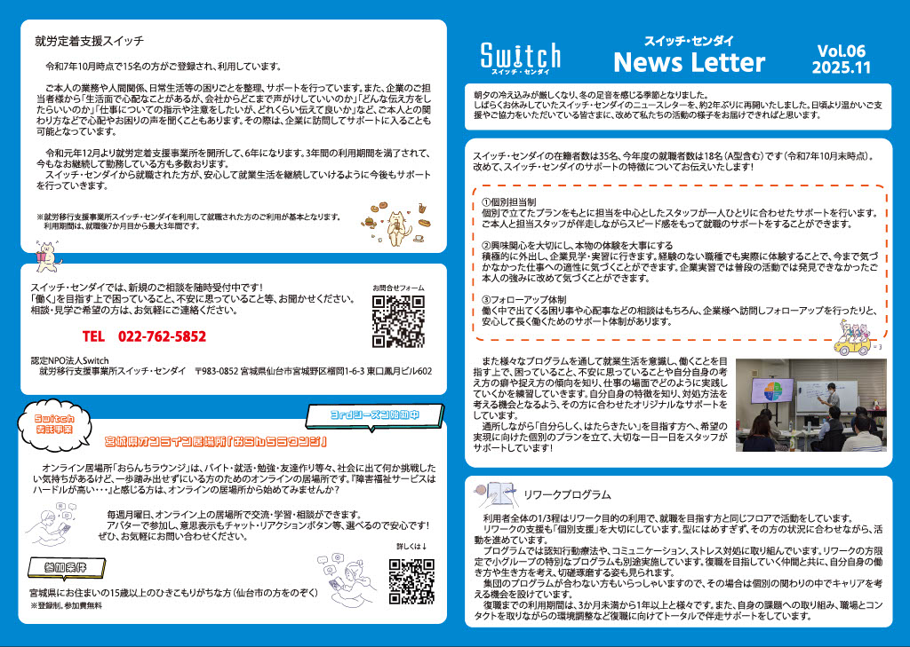 スイッチ・センダイでは、新規のご相談を随時受付中です!