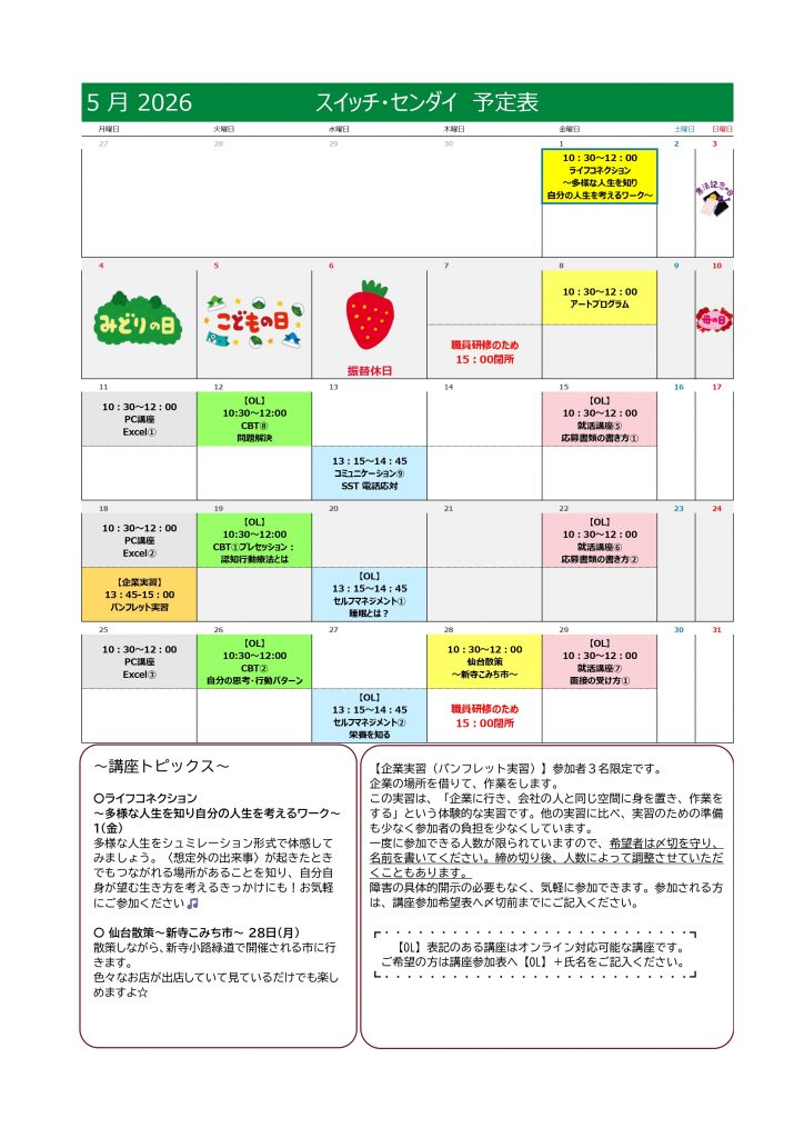 そんな5月のプログラムカレンダーのお知らせです🎈